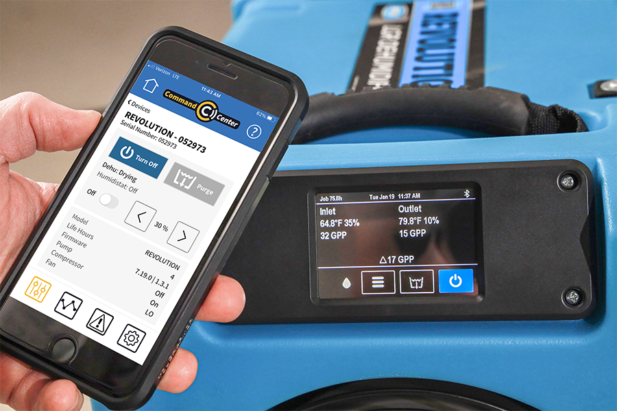 With Command Hub integrated into your current Dri-Eaz dehumidifier, you have the power and freedom to lead your business from anywhere, using the Dri-Eaz Command Center Pro Dashboard and App, for Apple and Android devices. Make your business more efficient and profitable with onsite AND remote job management—enjoy what it can do for your business today and imagine how it will transform your business tomorrow!