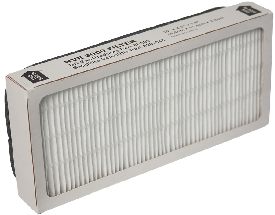 Our high-efficiency HEPA exhaust filter for the HVE 3000 captures potentially harmful particulates before they are recirculated into the air. Change the filter often to ensure the cleanest working environment.